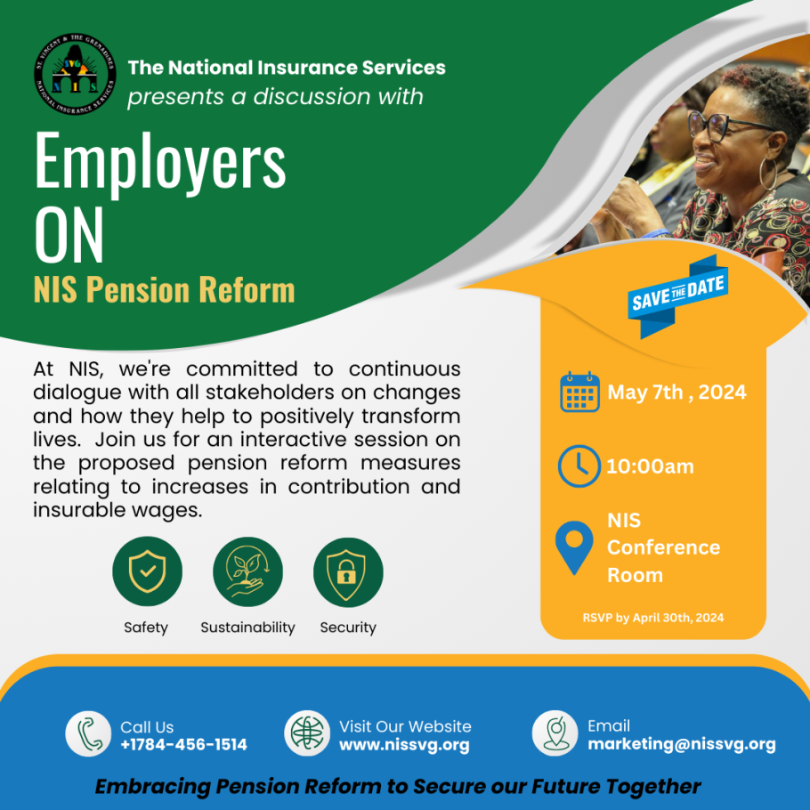 KINGSTOWN, St. Vincent. – To our valued employers, please note on June 1, we will implement the remaining pension reform measures; specific to you will be two very important measures.