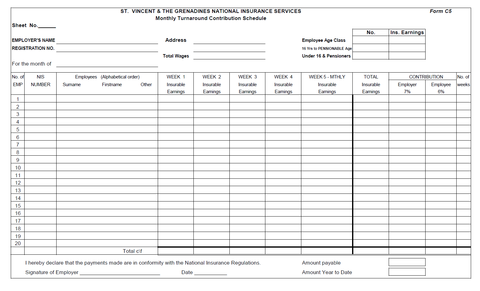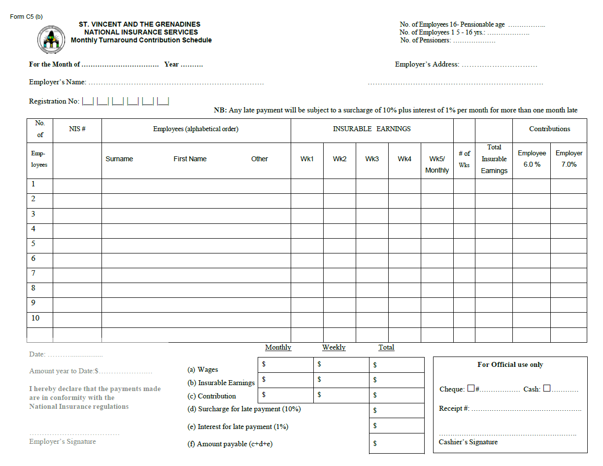 The National Insurance Services (NIS) wishes to advise all employers that effective February 28, 2014 the NIS will discontinue the Combined Form C5 and Remittance Booklet.